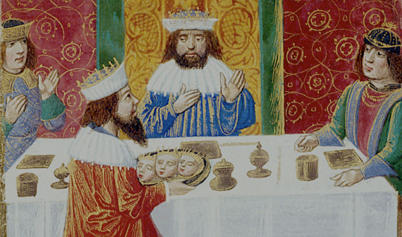 Mais, ensuite, Atrée le convia à un festin. Et à ce festin, Atrée servit à manger les fils de Thyeste, Pléisthène et Tantalos. Thyeste, enragé, déclara alors la malédiction terrible sur les descendants d’Atrée. Il consulta également l’oracle de Delphes, mais qui lui conseilla d’avoir un enfant avec sa propre fille, pour venger Atrée. C’est ce que fit Thyeste : il viola sa fille, qui donna naissance à Egisthe, le fruit de la vengeance de Thyeste, celui qui, un jour, vengerait son père.